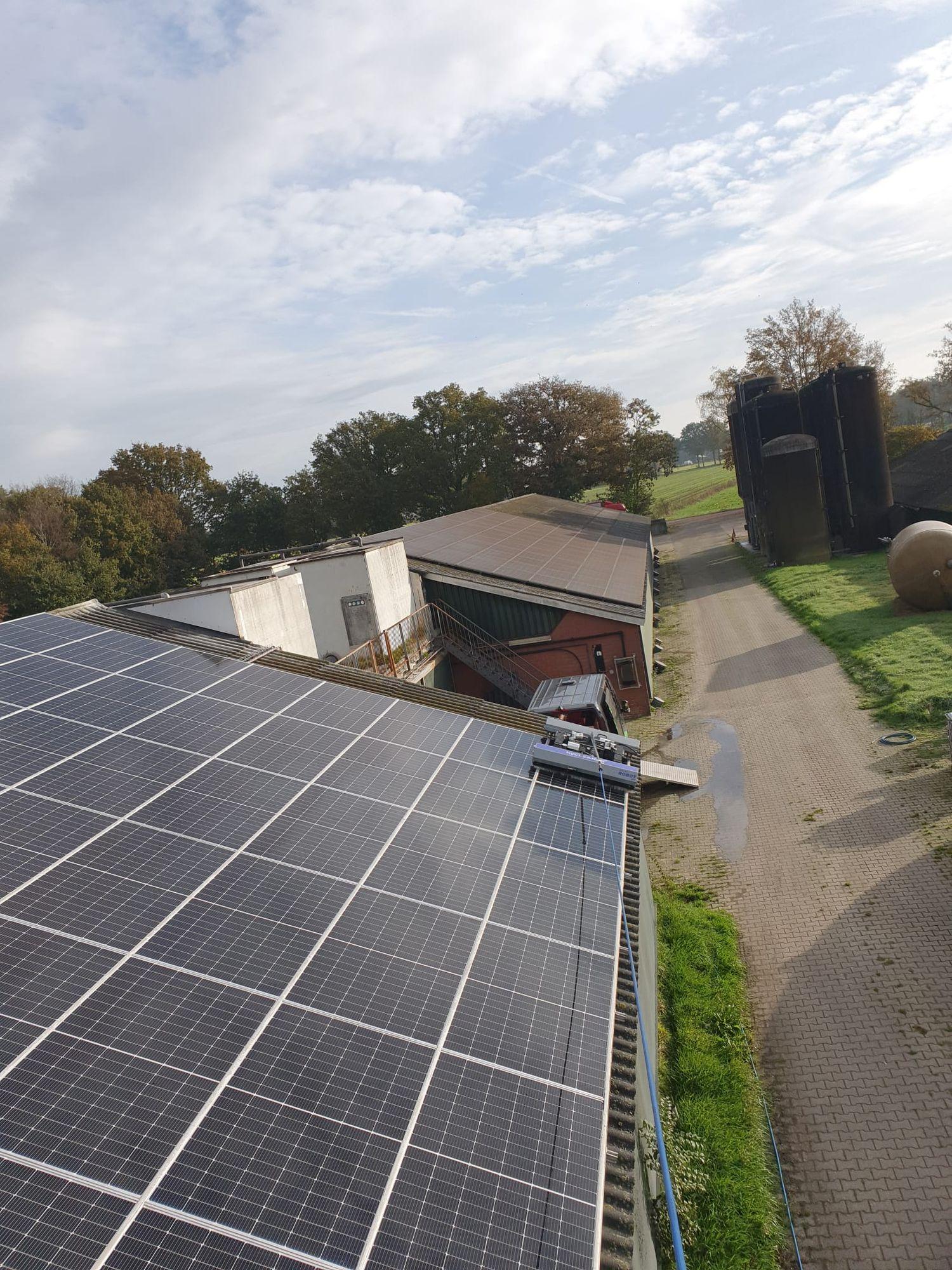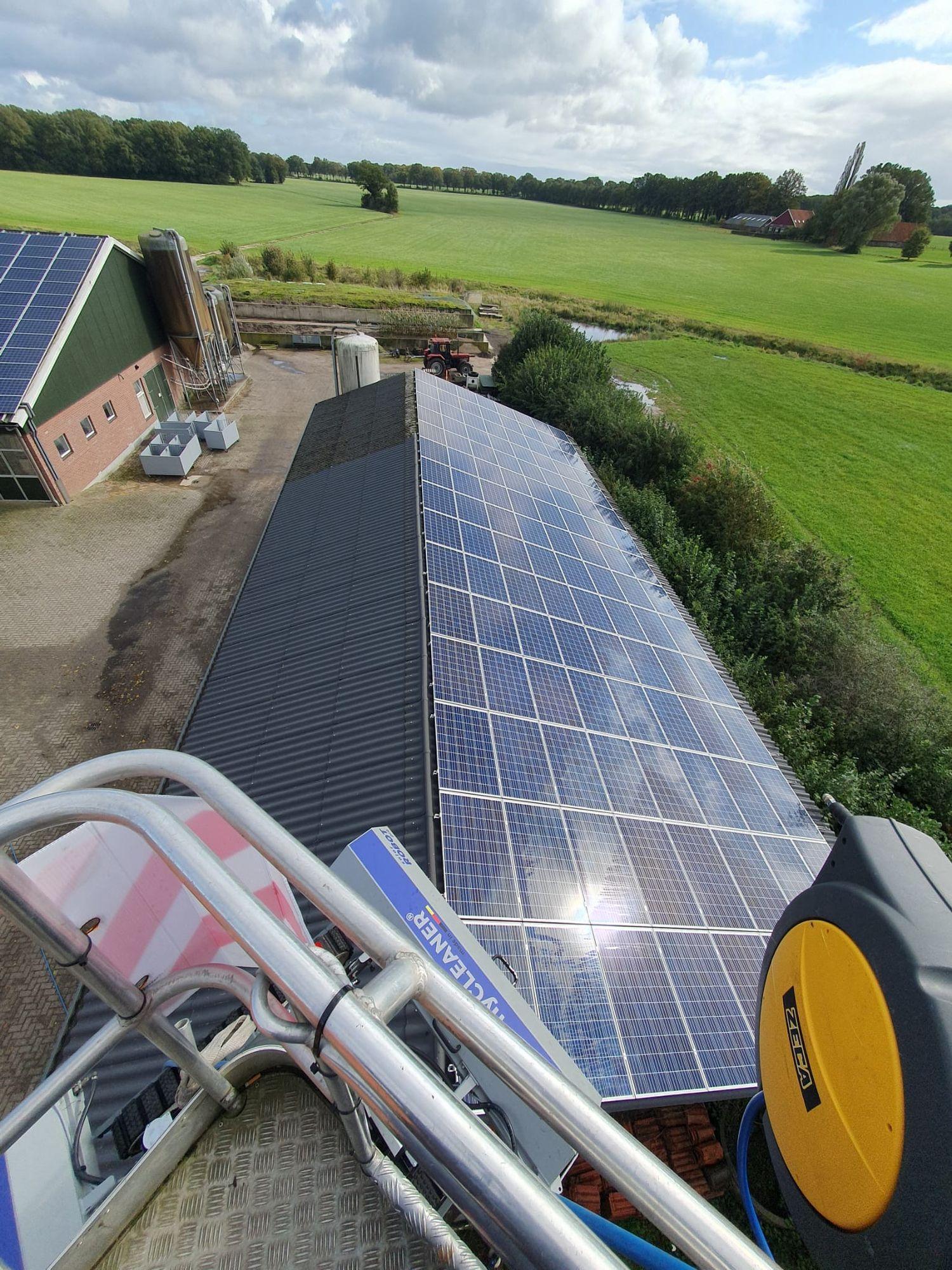 Voor Schilderinck in Beltrum hebben we de panelen op de stallen en bijgebouwen gewassen. Mooi weer en een schoon eindresultaat, beter kan het niet!